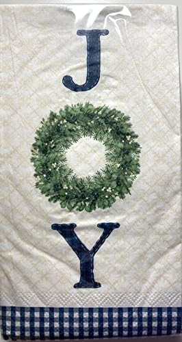 Joy Wreath Hostess Guest Disposable Paper Napkins Stitched Design Letters Green Wreath Blue White Check Border Add Joy To Holiday Parties Dinners 36 Ct 3 Ply 4 25x7 75